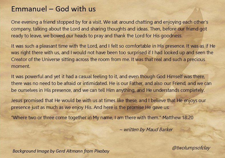 One of the ladies at Bible study shared a commentary that I really appreciated and took to heart. Basically, it said that a helpful way to think of the role of the Holy Spirit is to contrast His role to the role of the enemy, the “accuser of the brethren.” The enemy is the one who accuses us and who seeks to steal, kill, and destroy. The Holy Spirit, the Spirit of Truth, is the One who is on our side (if we are followers of Christ), as our Advocate, our Guide, our Teacher . . .This description resonated in my mind because it is an image I can wrap my imagination around, and it really blessed me. It has been on my mind ever since.